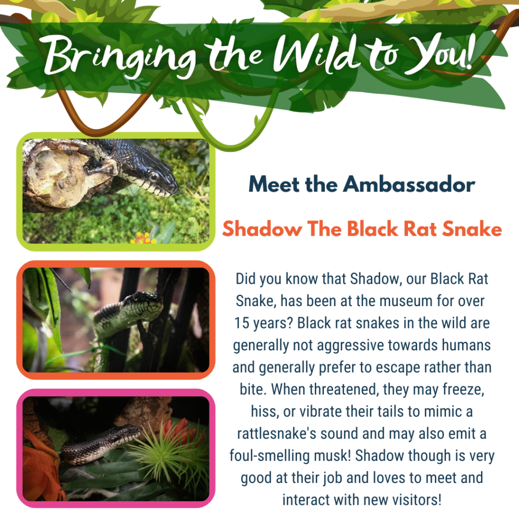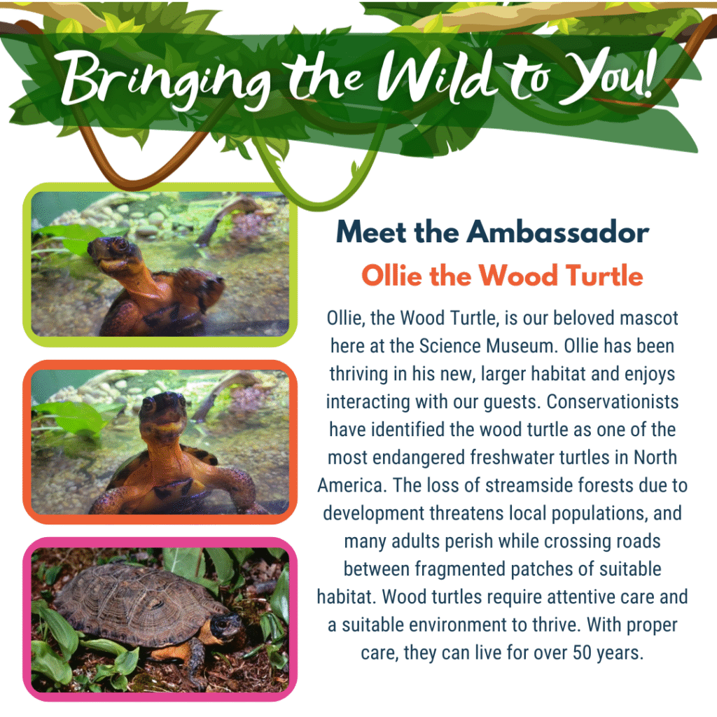 At the Science Museum of Western Virginia, we’re thrilled to introduce our Animal Ambassadors and showcase the incredible diversity of wildlife. From colorful macaws to slithering snakes and gentle turtles, each ambassador has a unique story to tell. We believe that connecting with animals is a powerful way to inspire curiosity and conservation. Plus, our animal department can provide valuable resources and information for those considering these animals as pets. Join us on a journey of discovery and learn how you can support our animal department to ensure the well-being of these amazing creatures.