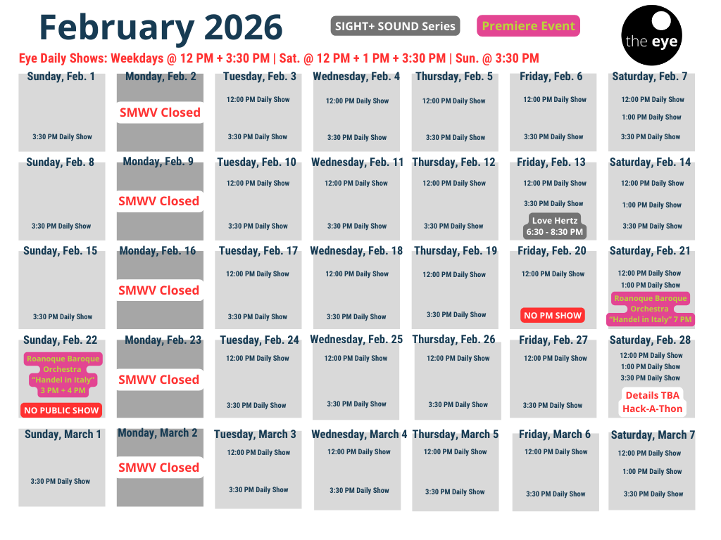 Welcome to The Eye Planetarium at the Science Museum of Western Virginia–Roanoke’s premiere planetarium.
